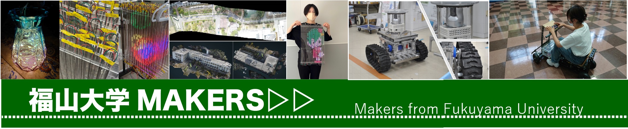 - 福山大学工学部の学科横断型授業「みらい工学プロジェクト」で学生が制作した、人が乗ることができる、自動運転電気自動車を展示します。人が乗れる小さな電気自動車を、電動キックボード用インホイールモータなどを使って作成し、AI RC Carでよく使われる Donkey Carの制御装置とソフトウェア等を組み合わせて実現しました。
