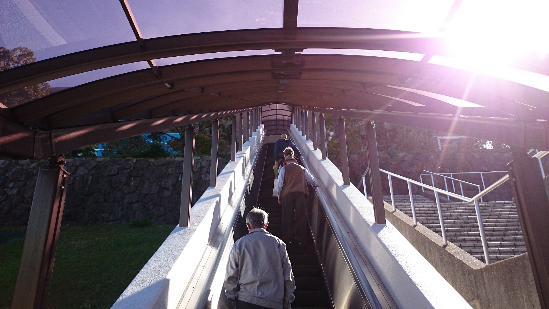 - At the up side of the escalator, the building No.27, the university hall is in front of there.