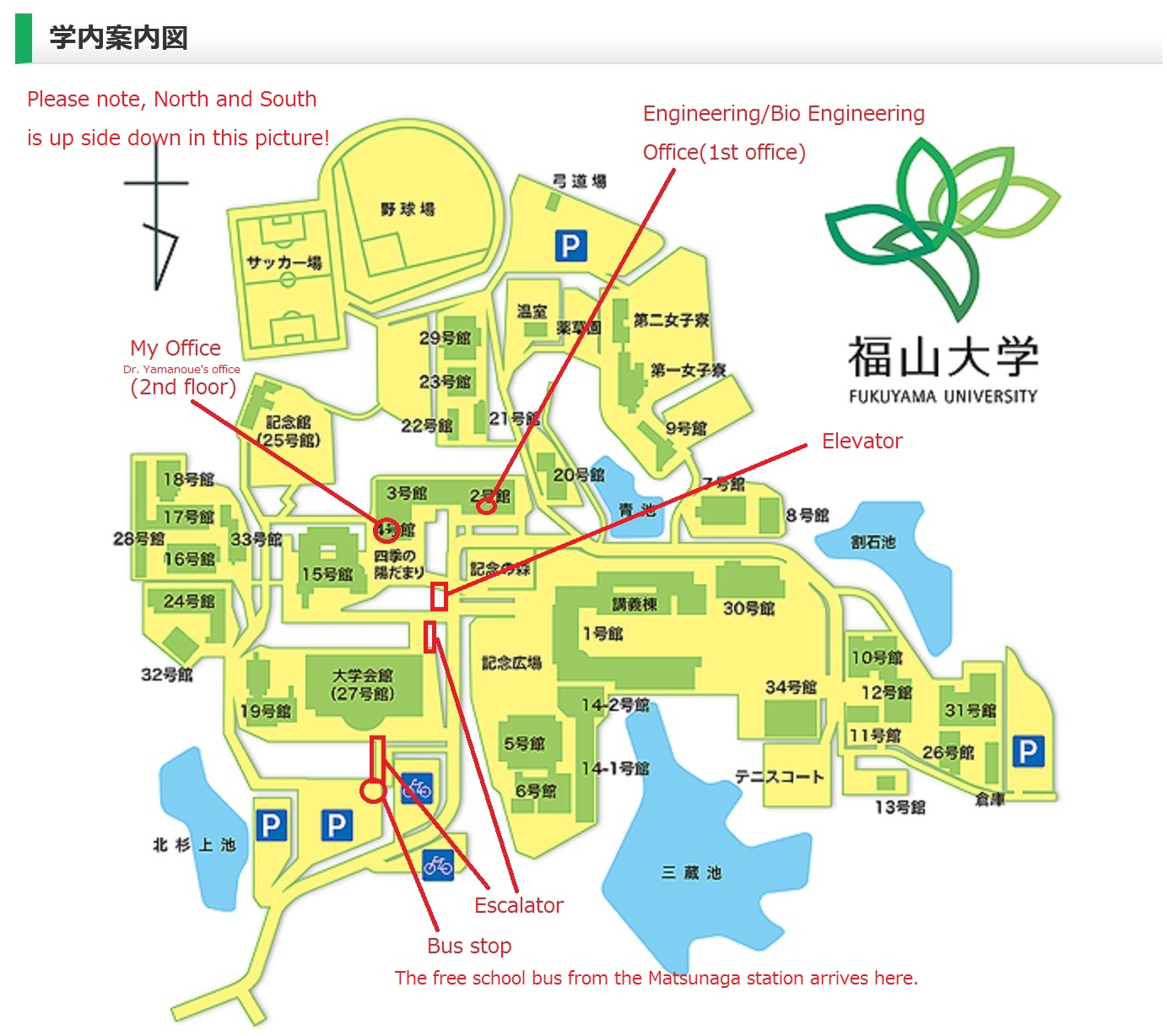 From the bus stop to the engineering buildings in Fukuyama University.†